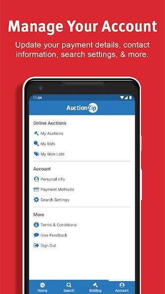 • Manage auctions, bids and purchases from your account.
