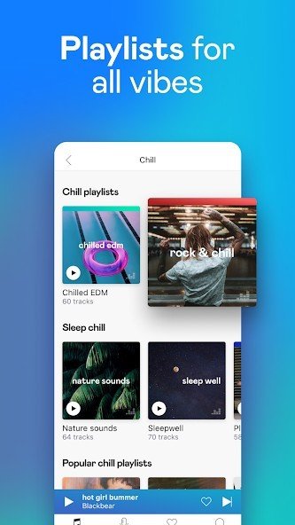 Discover and create playlists in your favorite genres: hip hop, rap, rock, lofi.