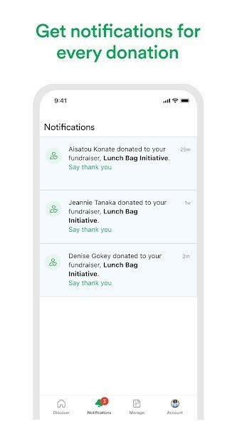 • Receive updates in real time: Never miss a donation or an important update about your fundraiser with timely app notifications