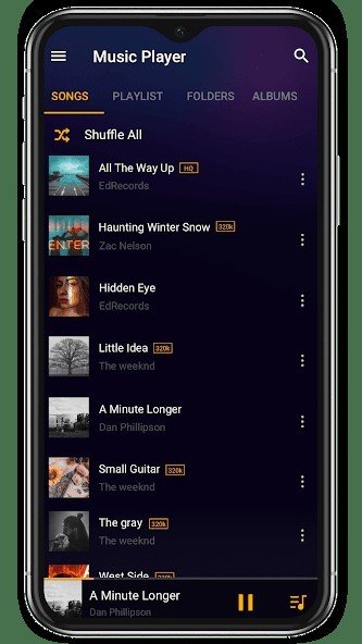 Not only an MP3 player, Music Player supports all music and audio formats including MP3, MIDI, WAV, FLAC, AAC, APE, etc. And play them in high quality.
