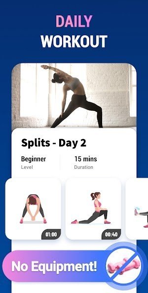 No need to go to the gym, this app provides home workout splits training that allows you to exercise at home, improve flexibility, and get full splits. This app is just like your personal trainer to teach you to exercise at home with effective home workout splits training. A few minutes a day, and you'll see great changes in weeks!